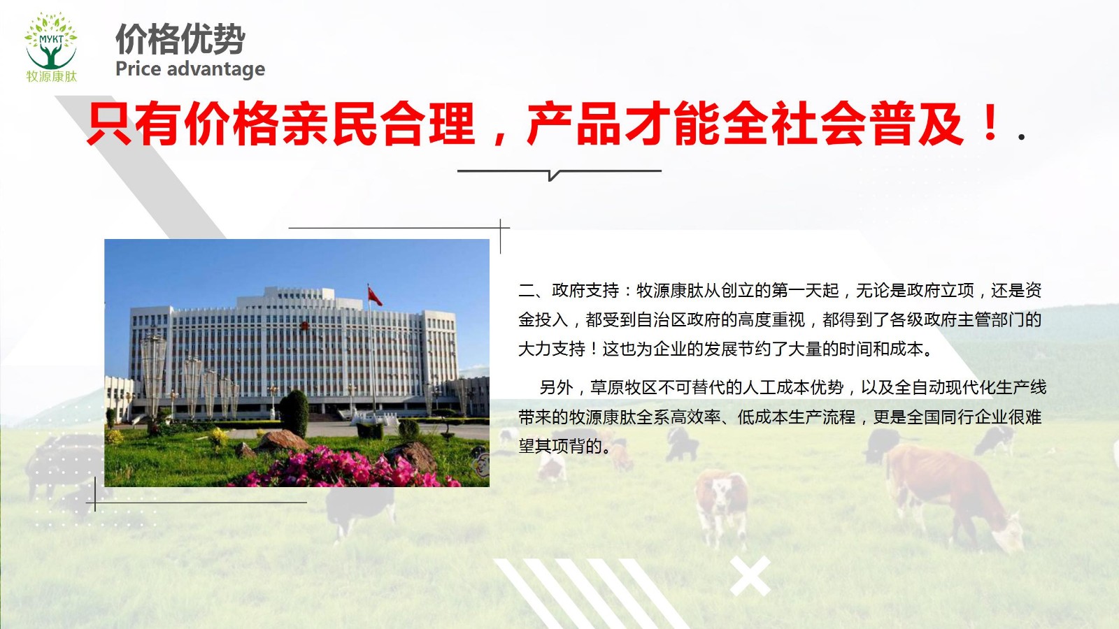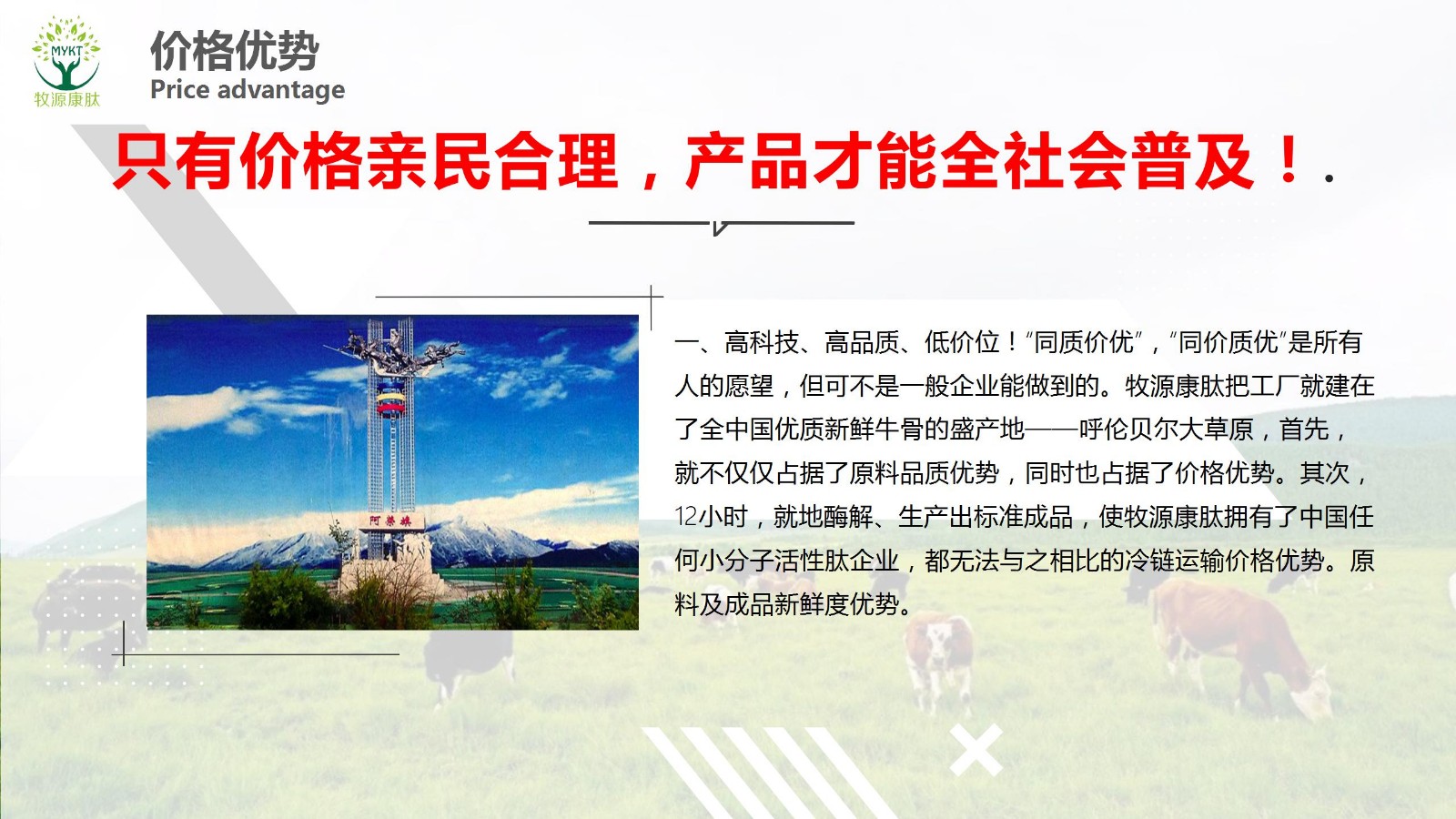 摘要:只有價(jià)格親民合理,產(chǎn)品才能全社會(huì)普及!高科技、高品質(zhì)、低價(jià)位!“同質(zhì)價(jià)優(yōu)”,“同價(jià)質(zhì)優(yōu)”是所有人的愿望,但可不是一般企業(yè)能做到的。牧源康肽把工廠就建在了全中國(guó)優(yōu)質(zhì)新鮮牛骨的盛產(chǎn)地——呼倫貝爾大草原,首先,就不僅僅占據(jù)了原料品質(zhì)優(yōu)勢(shì),同時(shí)也占..